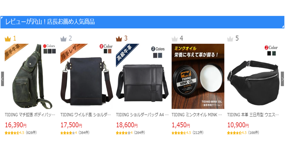 本革バッグ屋TIDINGは、品質・デザイン・価格のバランスに優れたショップです。本革ならではの高級感と耐久性を持ちながら、日常使いしやすい実用性も兼ね備えています。使い込むほどに味わいが増すレザー製品は、自分だけのアイテムとして長く愛用できるでしょう。
