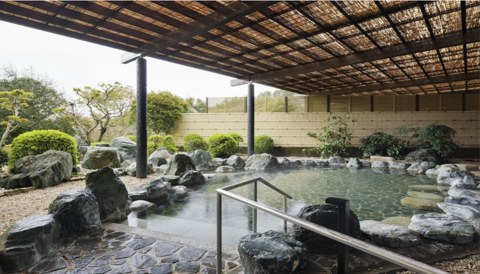 館内には新美里温泉「長寿の湯」を使用した大浴場と露天風呂を完備。アルカリ性単純温泉のやさしい湯が、旅の疲れをじんわりと癒します。日本庭園を望む落ち着いた空間での入浴体験は、まさに至福のひととき。さらにサウナや湯上がりラウンジもあり、リラックスできる環境が整っています。