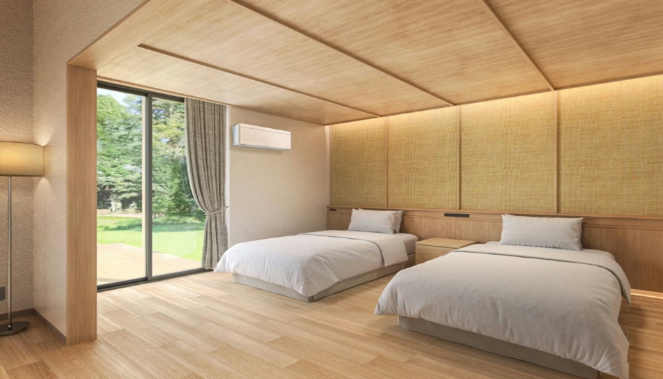 一方、ホテル棟は気軽に利用できる快適さが魅力。落ち着いたデザインの客室で、リラックスした滞在が叶います。