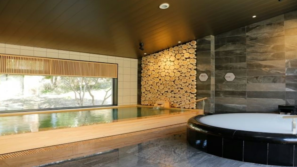 敷地内には天然温泉があり、「潮騒の湯」「真珠の湯」など多彩なお風呂を楽しめます。