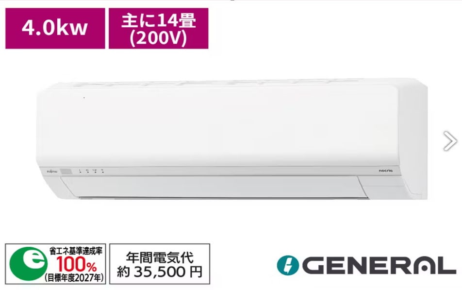 ゼネラルの「nocria-L」シリーズは、日々の暮らしに欠かせない空調環境をより快適に、そして清潔に保つことを目的に開発された高性能エアコンです。特に4.0kWモデルは、主に14畳前後のお部屋に最適なパワーを備えており、リビングや広めの寝室でもしっかりと冷暖房効果を発揮します。