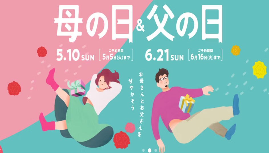 母の日なら花やスイーツ、父の日ならグルメやお酒など、